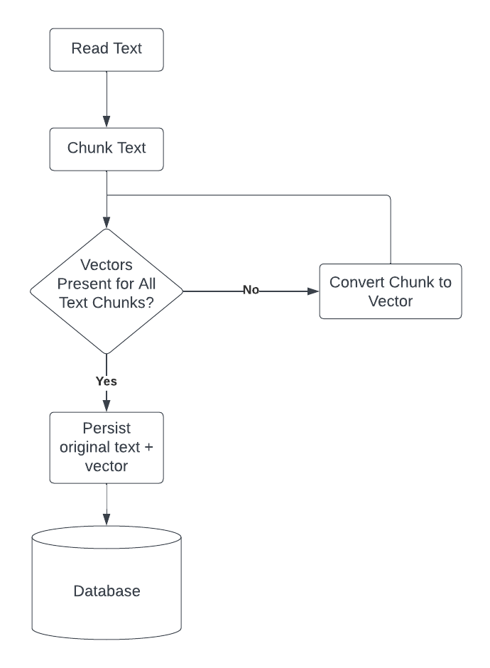 For this project, we will be using a simple text file divided into chunks of 200 characters, or 'text chunks'. We will store the text chunks and vectors in two separate arrays. We will be fetching the vector representation of each text chunk using the OpenAI API.